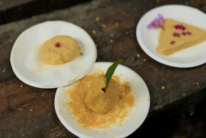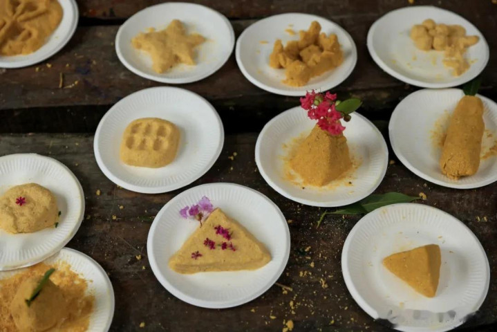 亲手为大熊猫制作营养美味的窝窝头,装点一下,希望大熊猫有个好胃口。