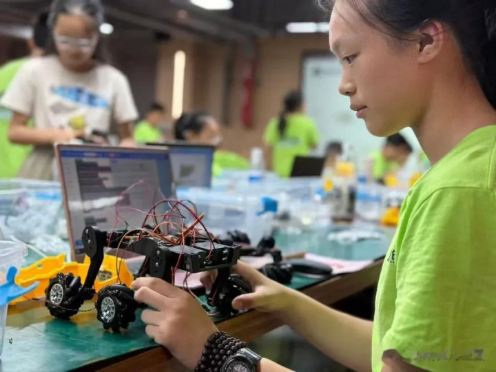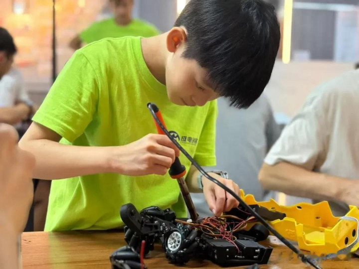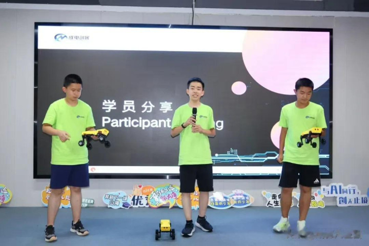 从机械搭建的第一根骨架,到电控板的每一次闪烁,从人工智能算法的调试,到语音互动的第一次响应......三天时间,一只智能机器狗在孩子们手中“诞生”。