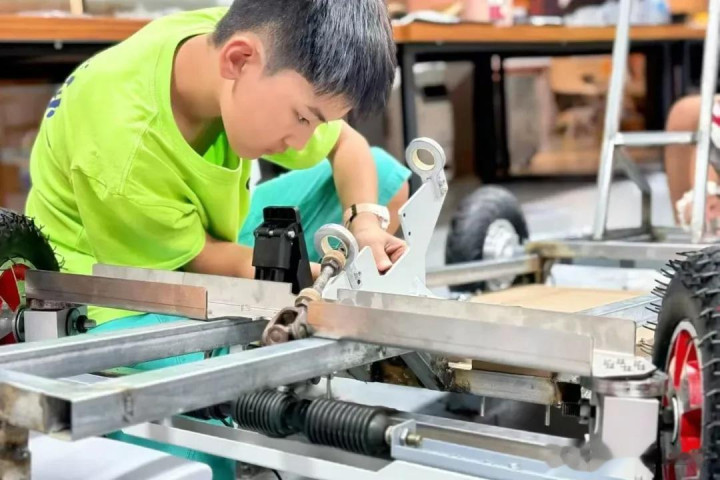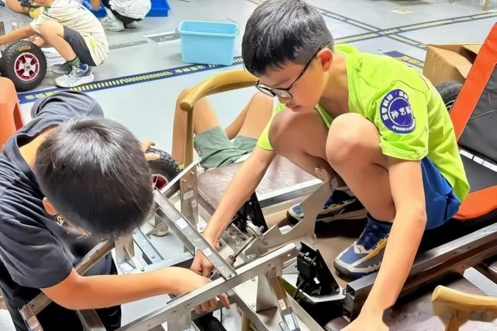 构件测量、板材切割、组建安装、车体搭建、轮组配置,这些专业词语,在孩子们眼中纷纷变成了一个个具体的“攻关游戏”。有孩子说,抱着平板玩游戏,确实不如和小伙伴们在真实世界力动手来得过瘾。