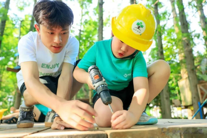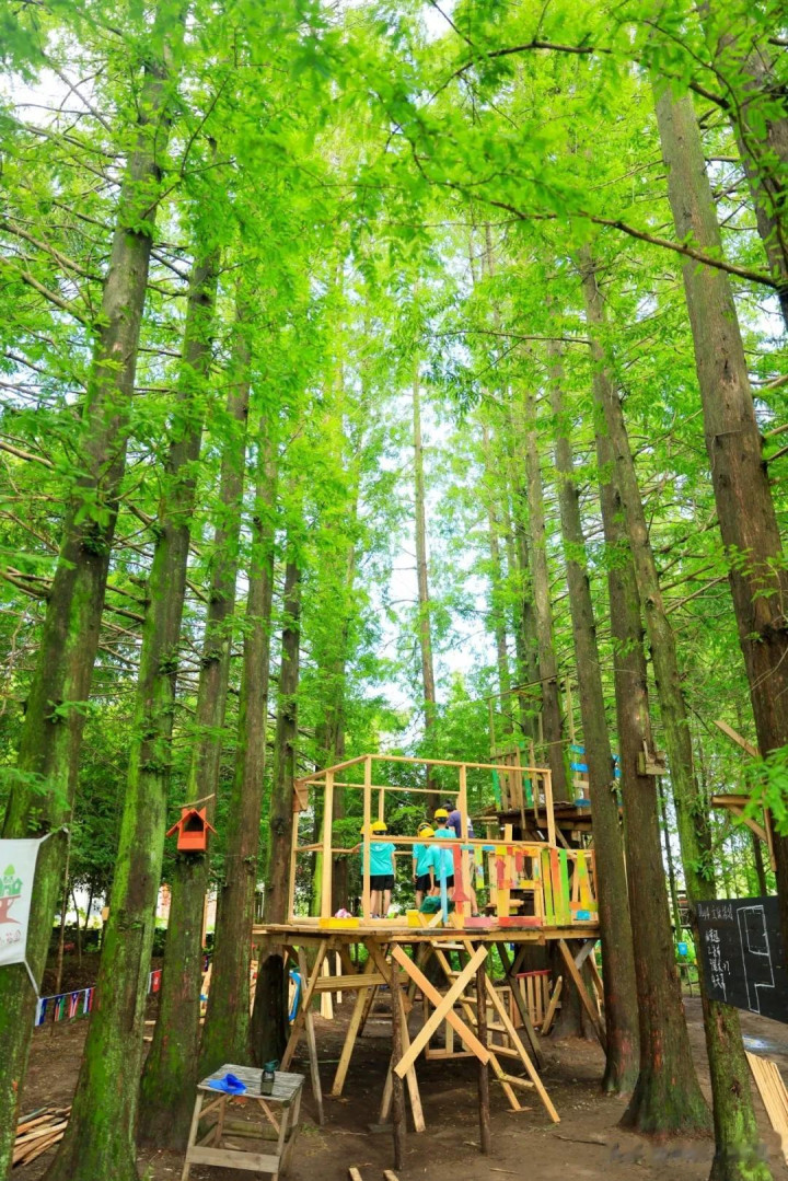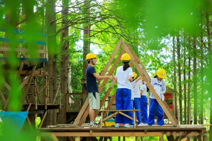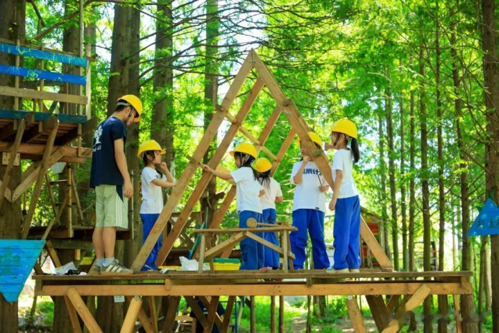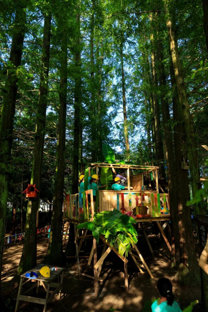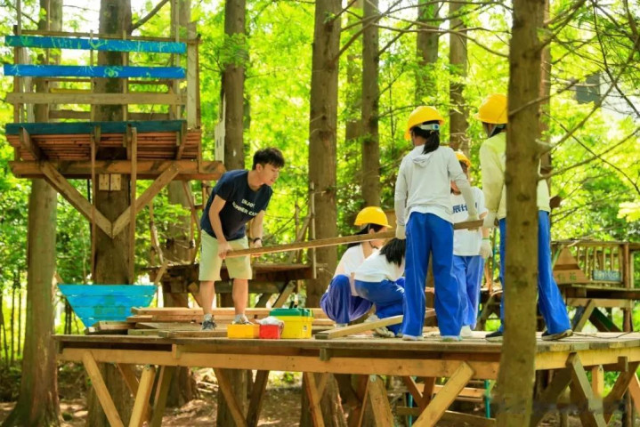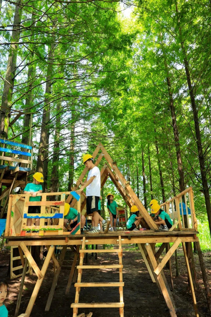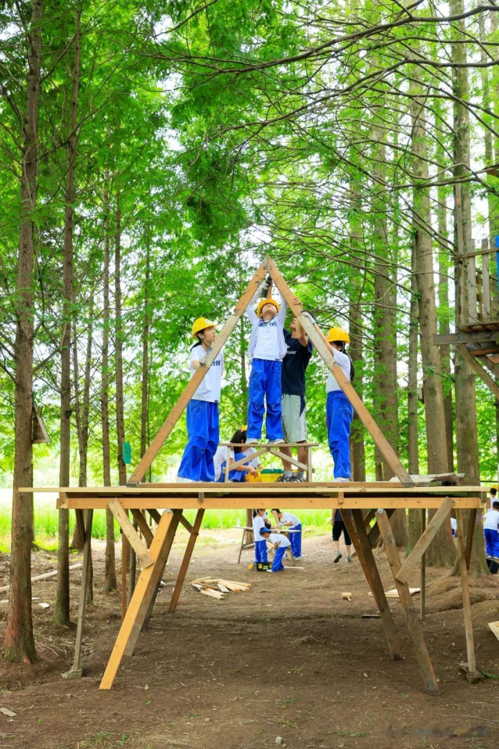 第一次在树林中上课,阳光从树叶间洒落,知了在头顶唱歌,我们一直专注在建造房屋的欣喜中。