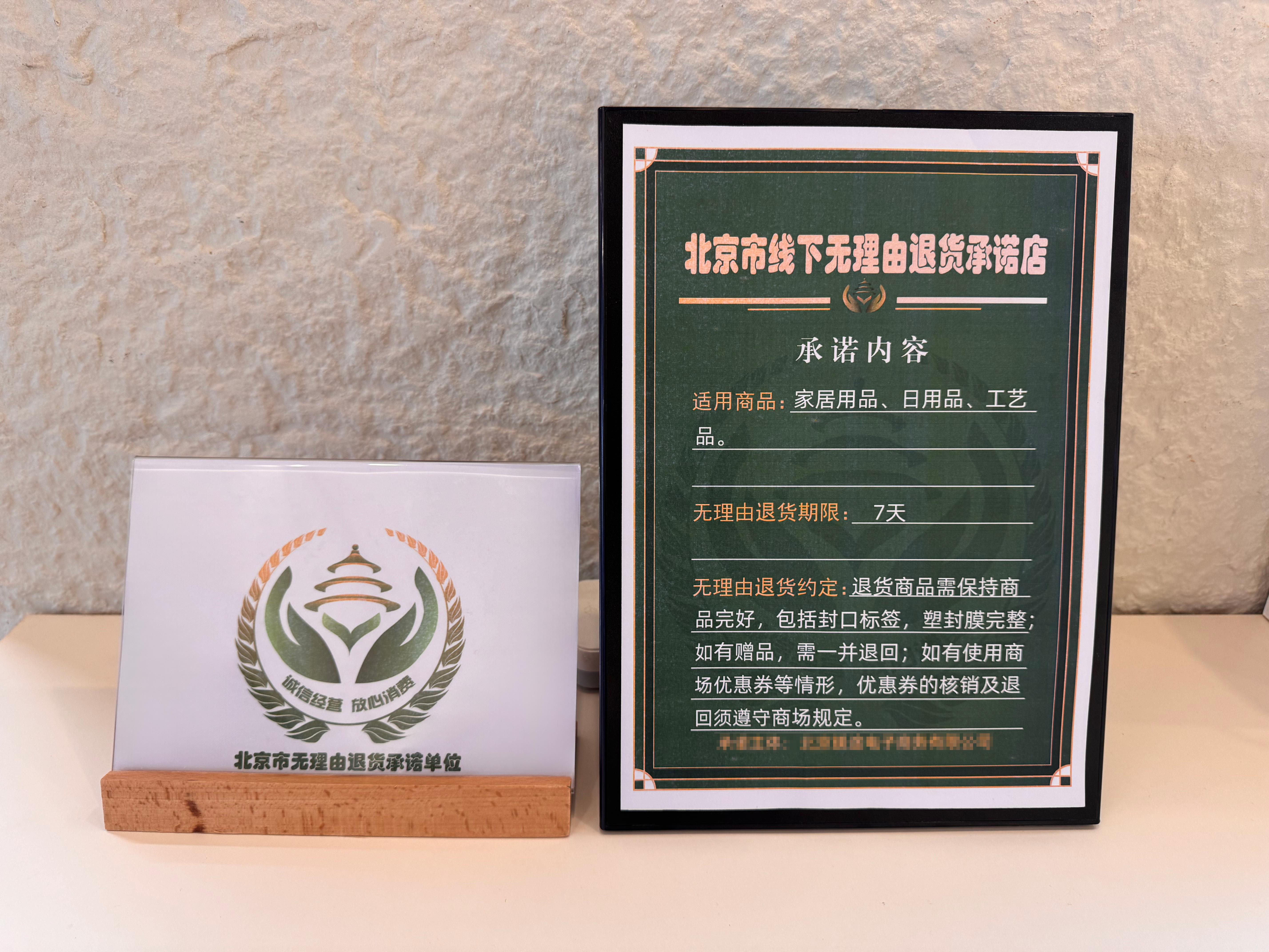 线下无理由退货承诺店牌匾。资料图片